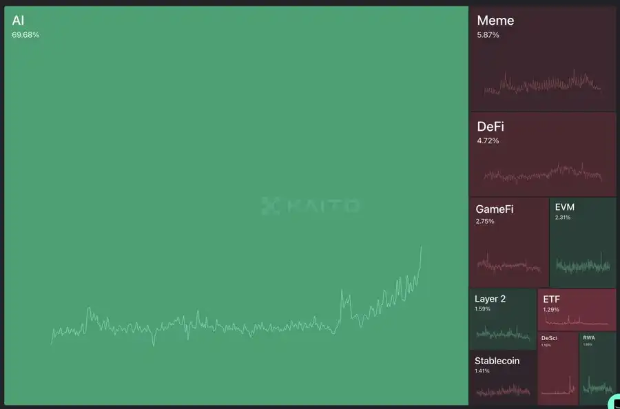 AI 话题的关注度本周**达到了 70%(kaitoai)。