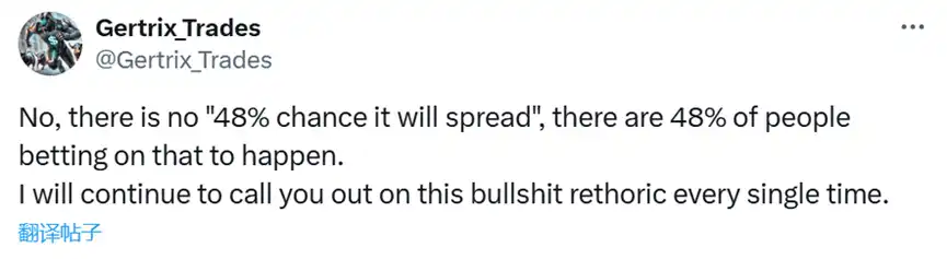 一些用户更担心,野火预测市场可能会鼓励赌徒纵火以提高其**的成功率。一位用户指出,这些市场的****基于赌徒的情绪,并在回应 Polymarket 的帖子时表示:「不,没有所谓『48% 的可能性会蔓延』,只是有 48% 的人在赌它会发生。」