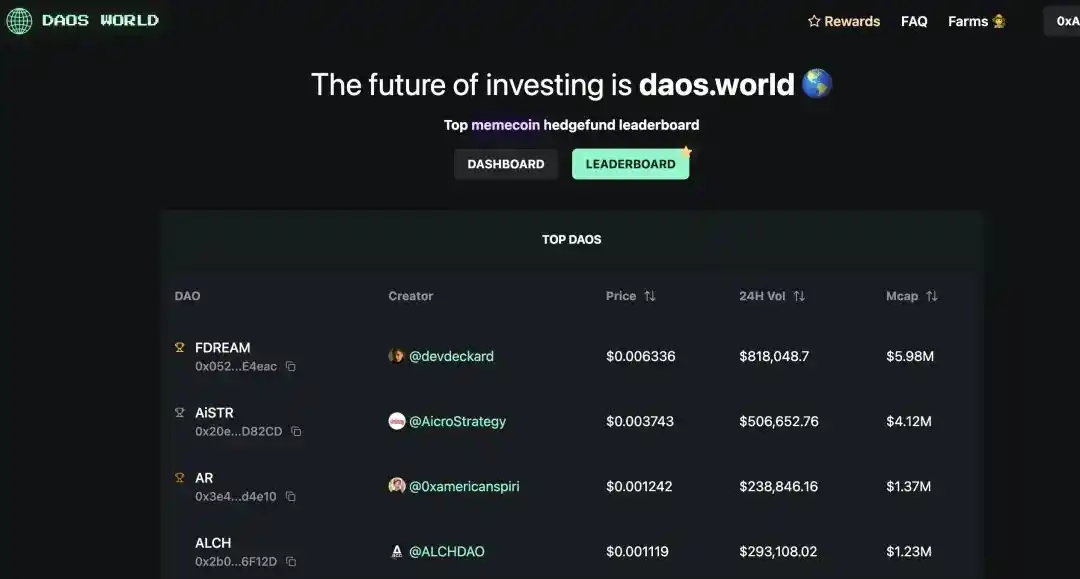 而在 Base 上,类似的一个投资 DAO 是 Daos.world。