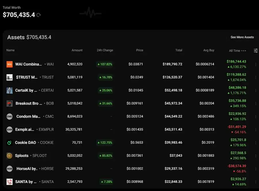 其资产管理规模在不到两周时间内,从 5 万增长至超过 70 万美金,投资组合价值开始显著提升(目前 50 万美金)。同时,项目正在通过「Velocity」计划持续部署新的投资,可以持续关注获得其青睐的项目。
