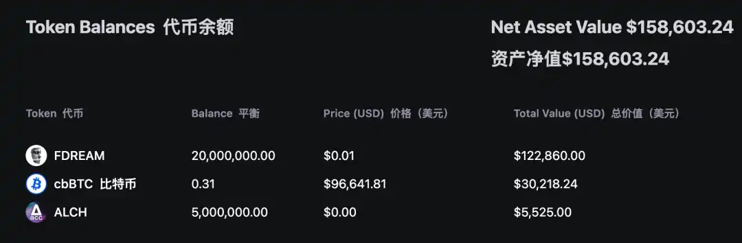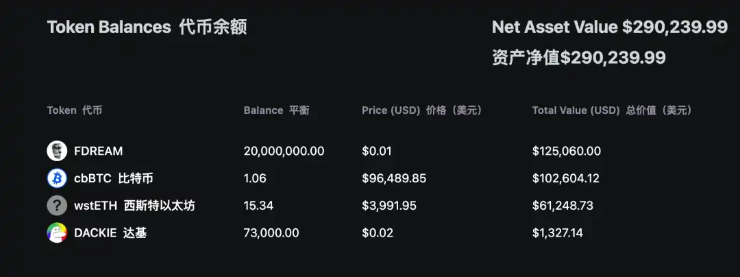 DAO 的持仓也确实反映了它只买 cbBTC,但买的更多的还是兄弟 DAO $FDREAM 的**。