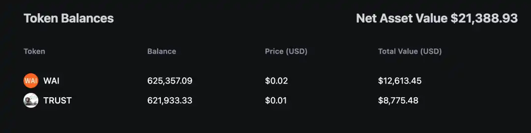 不过从目前 DR3AM 的持仓来看,它更多的是在买其他投资 DAO 的**,例如 WAI 和 TRUST(后文有介绍)。