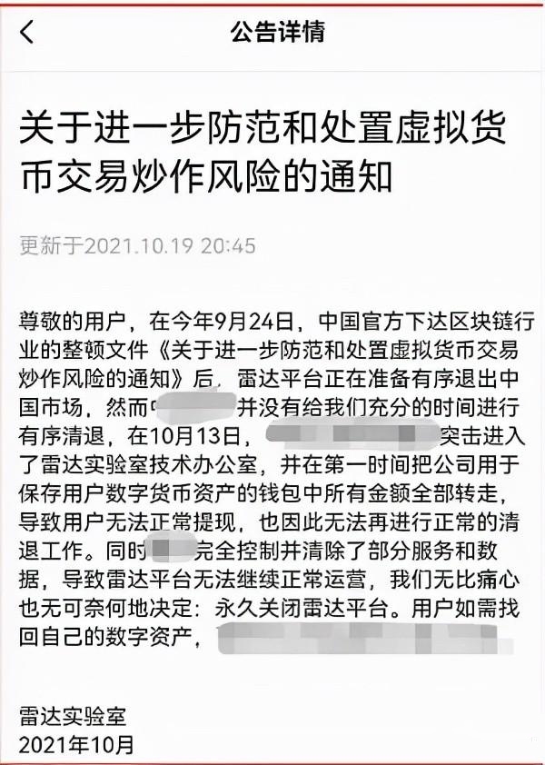 2021年10月19日,这次雷达官网直接宣布**关闭雷达币,****大神盘**崩盘,让多少人夜不成寐。