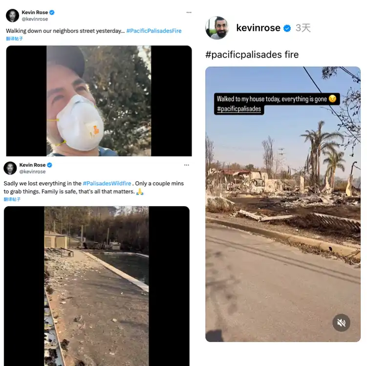 就像他视频中展现的那样,Rose 位于洛杉矶的住宅在加州山火中被**摧毁。