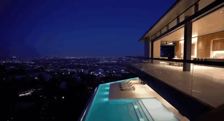 这座位于 10671 Chalon Road, Los Angeles, CA 90077 的豪宅不仅占地近五英亩,还包括一座 19,000 平方英尺的主屋和一座 6,600 平方英尺的宾客豪宅,拥有至少 10 间卧室和 13 间浴室。庄园内设施一应俱全,包括网球场、两个游泳池、汽车场、家庭影院以及水疗**和健身房。