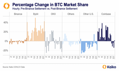 上周,加密货币交易所币安与美国监管机构达成了一项巨额和解协议,随后一家链上数据分析公司公布了一份报告,指出Coinbase的市场份额出现了显著增长。