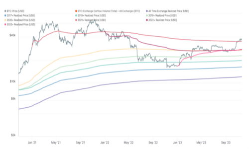 交易所提款实现价格为当前BTC价格区间增加了另一条关键线。