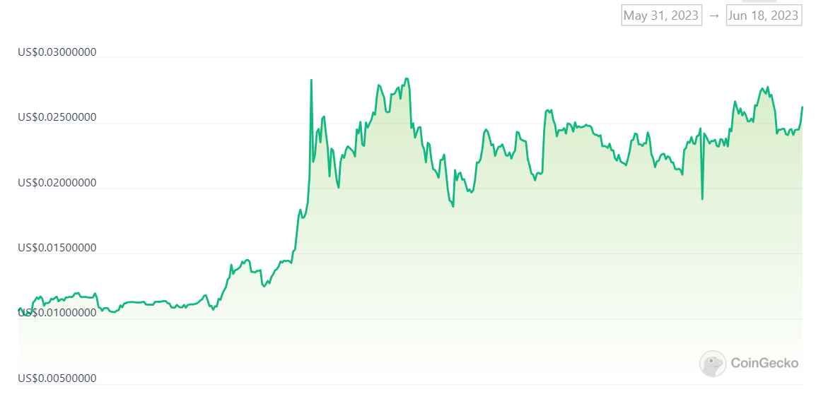 据CoinGecko数据显示,OX价格近7日上扬了15.2%,近14日上扬了133.6%,至截稿前报0.02587515美元,不过距离8日创下的0.02919135美元新高下跌了超过11%。