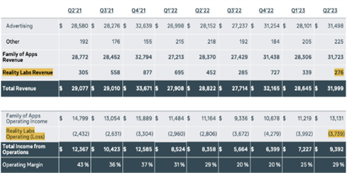 第二季度,梅塔的元资产相关亏损超过37.4亿美元,到2023年为止,这家大型科技公司在虚拟现实业务上花费了77亿美元。