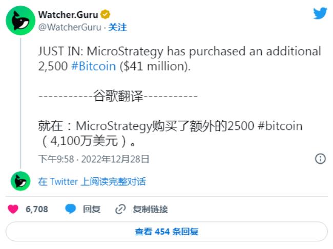 根据 SEC 的详细信息,MicroStrategy 以 4100 万美元的价格在其储备中增加了 2500 个比特币。截至 2022 年 12 月 27 日,该公司持有 132,500 个比特币,以 40.3 亿美元的价格以每个 BTC 30,397 美元的平均价格收购。