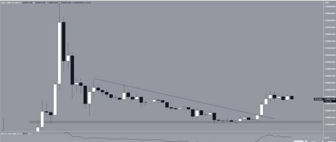 6月21日,价格突破阻力线,确认完成回调。PEPE 在下跌之前达到 0.0000017 美元的高点。