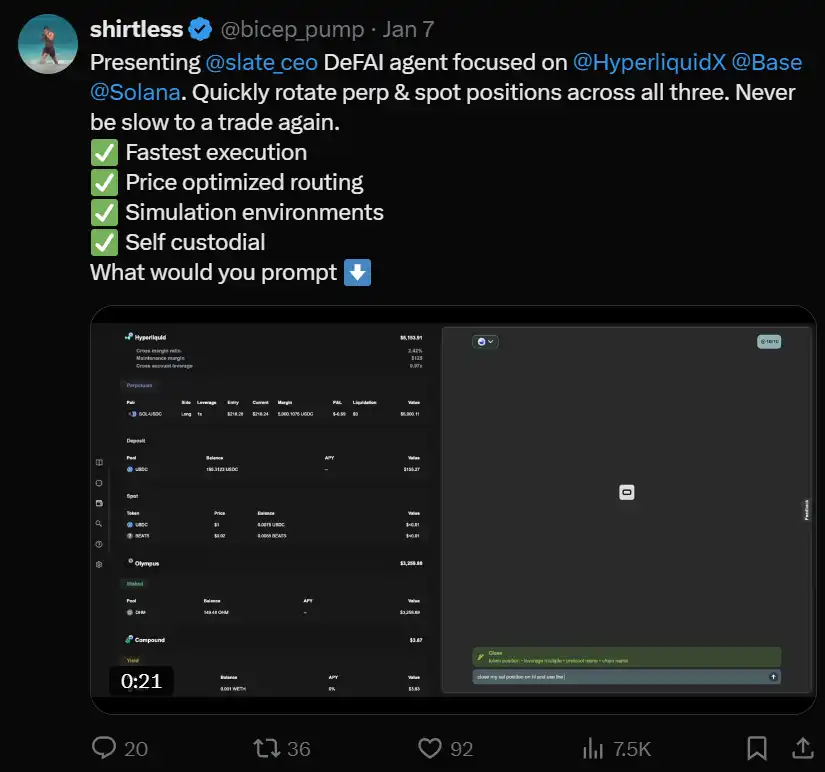 尽管体验有些笨拙,但我依然看好 DeFAI,特别是抽象层,因为它们的愿景是简化 DeFi 用户体验。这一愿景(及其执行)对于实现大众普及和吸引普通用户是非常需要的。