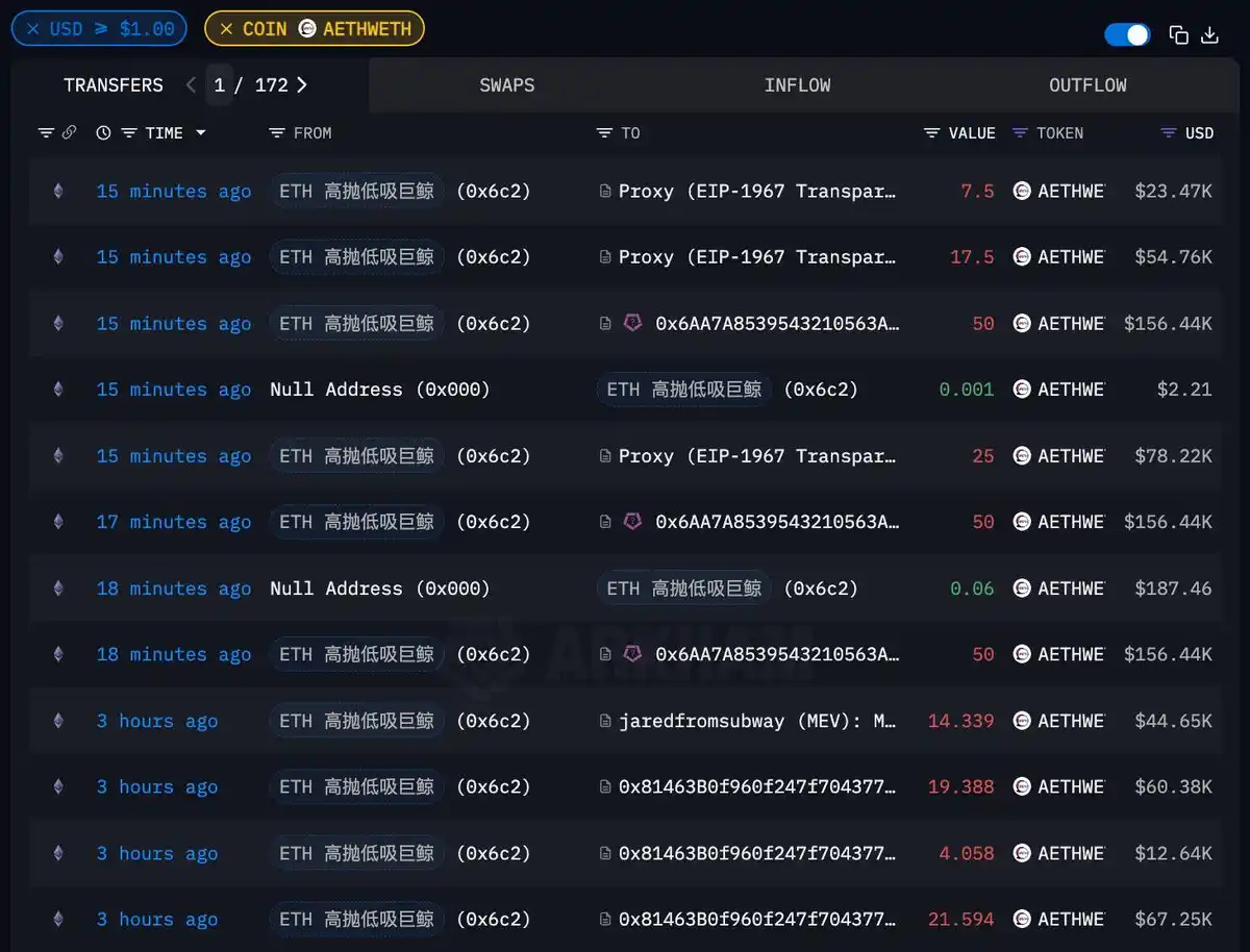 波段胜率 83.3% 的 ETH 波段巨鲸以均价 $3106.53 减仓了 5,872.63 枚 ETH(即昨晚暴跌时加仓的部分),小亏 53 万美金;目前两个地址仍剩余 11,252.98 枚 ETH(约 3539 万美金),成本 $3,196.85
