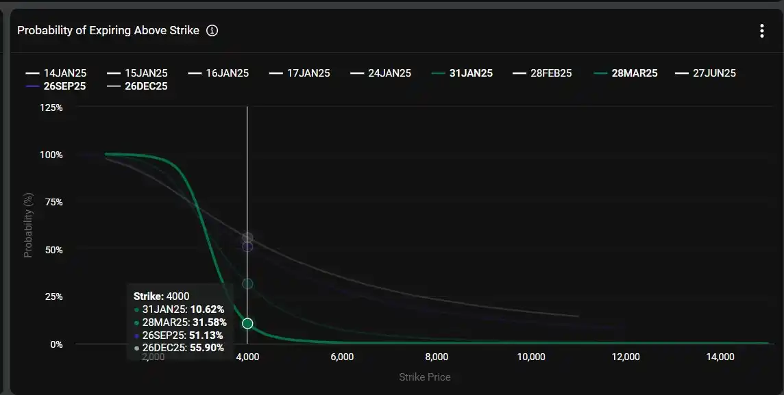 ETH1 月底前价格超过 4K 的可能性只有 10.62%。