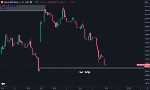 今天比特币价格跌至59,604美元的低点,下跌了4%。据几位**的加密货币分析师称,这一趋势主要是由CME缺口现象推动的,这一概念在芝加哥商品交易所(CME)的比特币期货交易中至关重要。