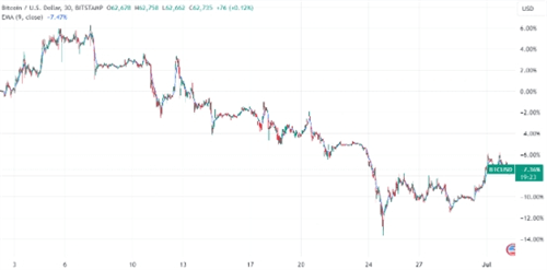 德国政府这一比特币钱包的持币量惊人,据估计已超过43850枚,总价值高达27.5亿美元。如此庞大的潜在销售压力,无疑对比特币价格构成了重大威胁。自6月初以来,比特币价格已呈现明显下降趋势,月内跌幅超过7.3%。尽管在6月24日触及58450美元的低点后有所反弹,但市场普遍认为,**进一步的抛售都可能触发更大幅度的下跌。