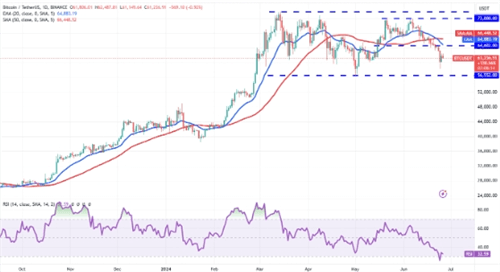 当前,20天指数移动平均值位于64,883美元,这是比特币面临的主要阻力位。若价格能够突破这一阻力位并接近该平均值,将意味着看跌者正在逐渐丧失对市场的控制。在这种情况下,比特币有可能进一步攀升至70,000美元。