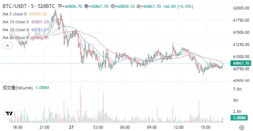 据**的行情数据显示,比特币当前的**价格为:$60,886.10,当前价格下跌:-0.9%,约等于下跌美元价格:$61,924.45,24小时**价格为:$60,606.05。