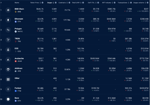 虽然BNB链在**层区块链中仍具有竞争力,但根据DappRaddar的数据,其交易量在过去30天内下降了21%,至990万。