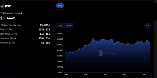 然而,根据DefiLlama的数据,由于BNB较历史高点下跌了11%,网络的总锁定价值(TVL)呈现出下降趋势。在6月6日至6月10日的短短几天内,BNB Chain的TVL就下降了6.8%,这反映了用户和开发者与网络互动的减少。