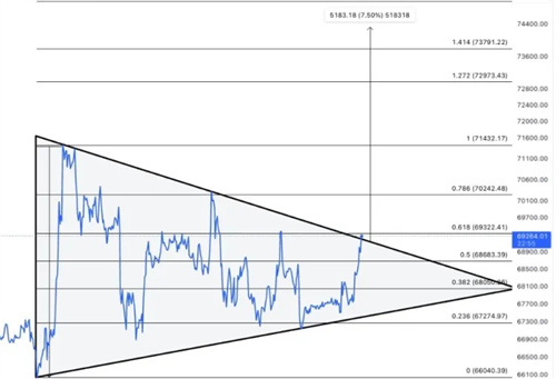 6月5日**行情数据表明,市场上**的加密货币比特币(BTC)再次突破了7万美元的重要里程碑。在67,000美元至69,000美元之间的短暂盘整之后,价格在此水平面临强劲阻力。