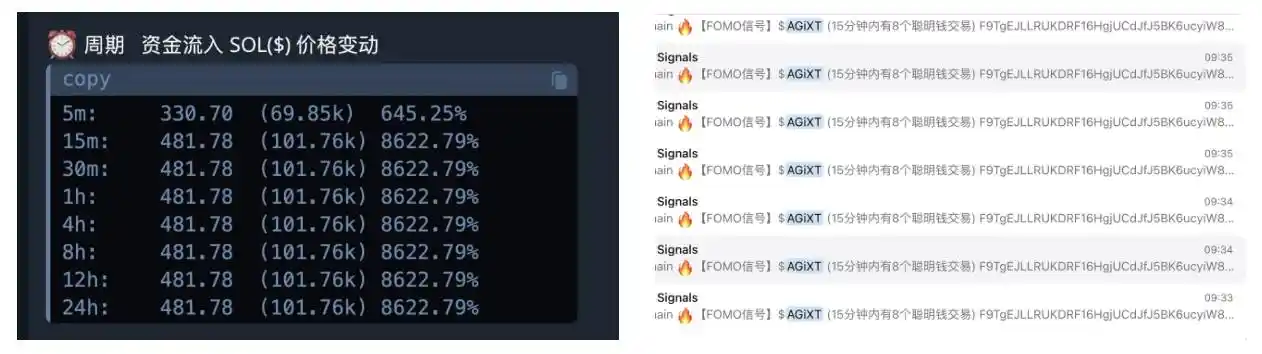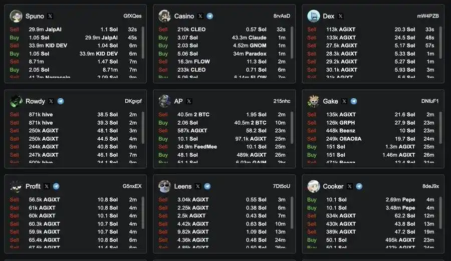而在大家后知后觉时,与之形成对比的是在该**发射的半小时分钟内,链上数据显示大量的聪明钱快速购入 AGIXT,并且不乏单笔交易超过 50 SOL 以上的鲸鱼。