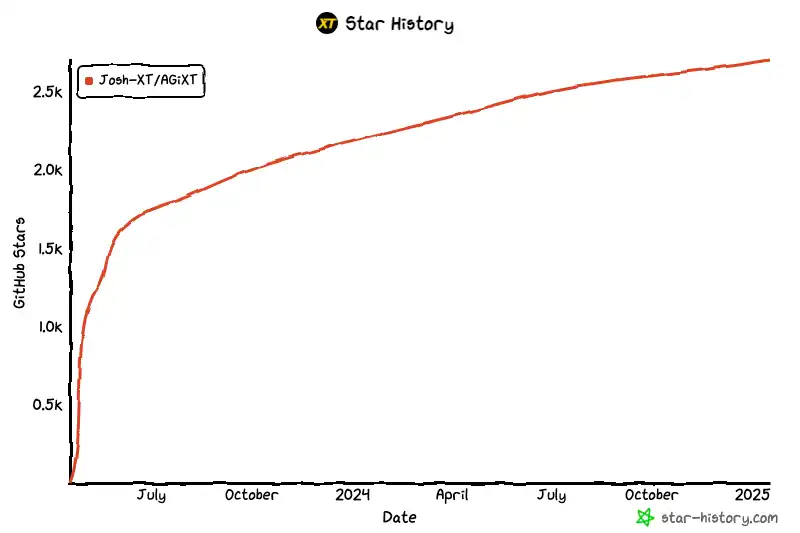 逛了逛 AGIXT 的代码仓库可以发现,该项目的点赞数(Star)已经超过了 2700 个,和纯靠空气吹故事并胡乱新建一个 git** 的项目比确实更胜一筹。
