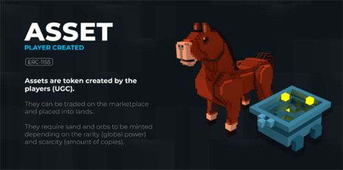资产,即游戏中的各种物品,包括角色装备、场景摆设等,它们都以NFT的形式存在,并可在市场上自由交易。