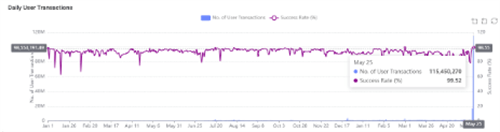 值得一提的是,尽管交易量巨大,阿普托斯依然保持了稳定的交易费用和成功率。这得益于APTOS平台上的聚合器功能,它能够同时处理多项事务,确保用户获得流畅且**的体验。