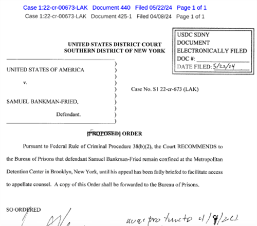 在5月22日向法院提交的一份信件中,卡普兰法官曾要求班克曼-弗里德继续留在纽约,“直到他的上诉得到充分的情况介绍,以便于获得上诉律师的协助。”