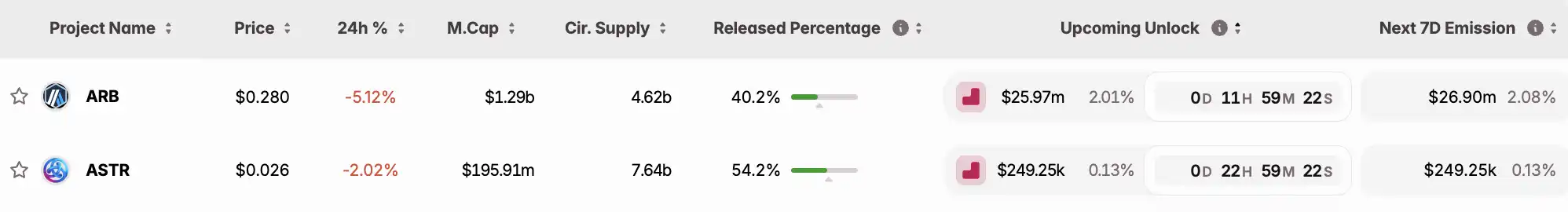 每日市场整体资金热度(根据资金费率反映)与**解锁