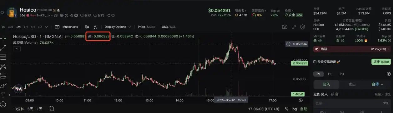 原型为 Instagram 上拥有 180 万粉丝的可爱猫咪,在 Letsbonk.fun 平台上发行的 Hosico 是吉卜力 AI 画风类型的 Meme 币。据 GMGN 平台信息,Hosico **信息如下: