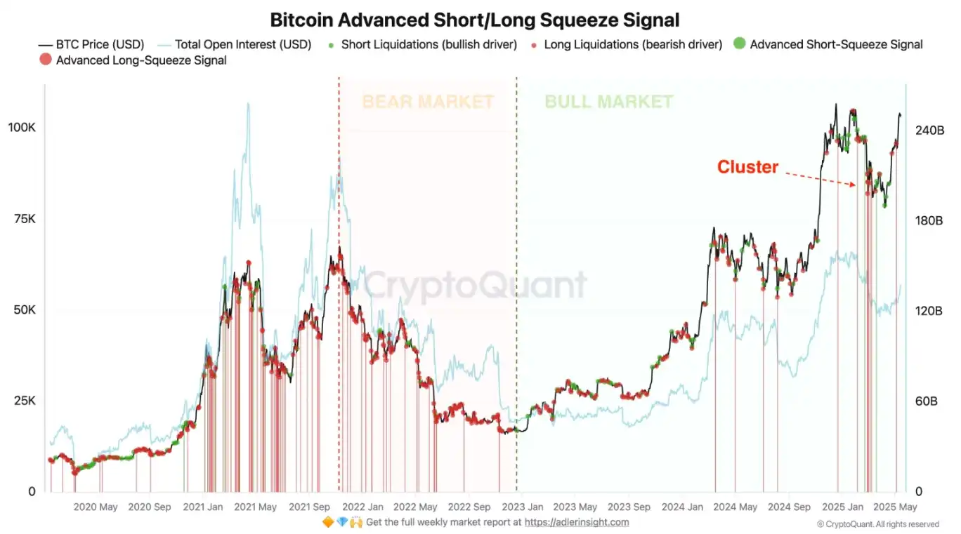 CryptoQuant 分析师 Axel Adler Jr 发文表示,相比 2021 年的牛市行情,当前牛市周期中做空交易者在建立空头仓位时表现得更为谨慎。在比特币价格触及 8 万美元水平时的回调中仅出现过一次明显的多头清算现象。分析师指出,这种情绪转变表明空头变得更加规避风险,这通常被视为看涨信号。