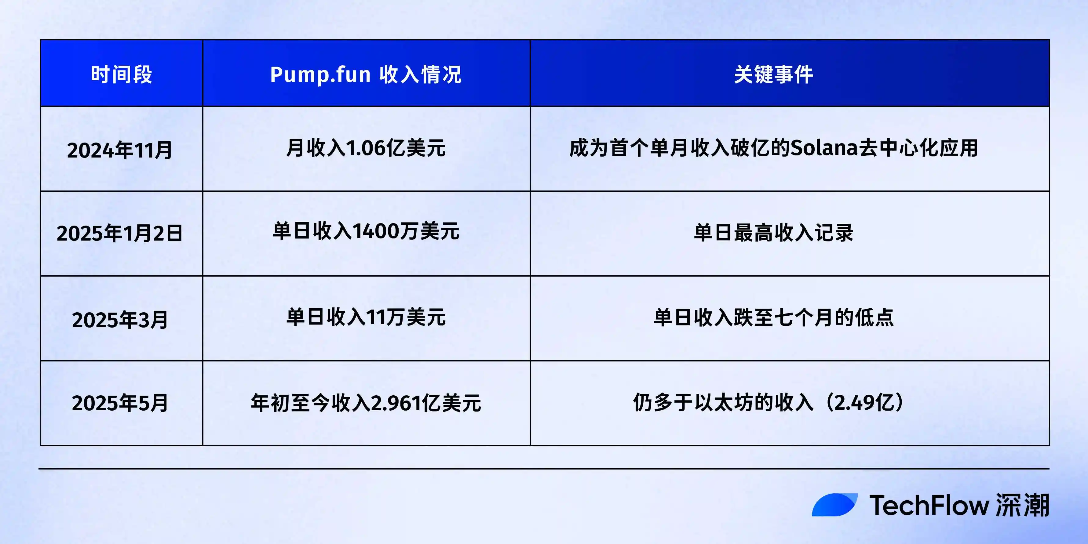 从 2024 年 11 日月收入破亿,到 2025 年 1 月 2 日日收入 1400 万的高光时刻,再到今年 3 月 9 日日收入低至 11.07 万... 这个平台的收入上下起伏近百倍,凸显 Meme 市场的周期性。