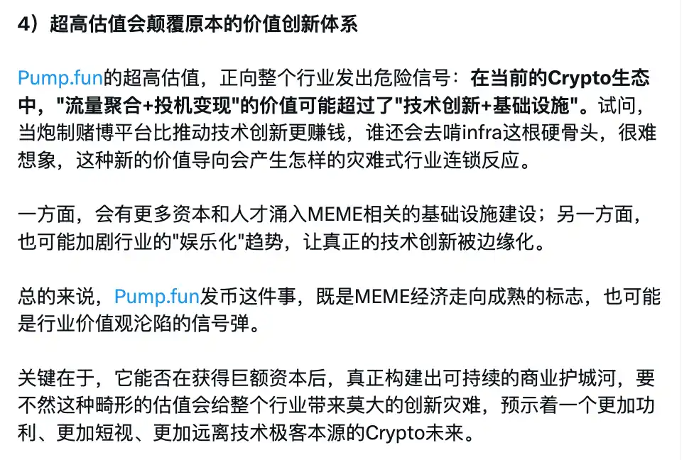 社区当前对 Pump 发币普遍持怀疑态度,例如研究员 Haotian 认为:「很难想象,一个 MEME 发射平台,估值竟然超越了大部分 DeFi 蓝筹协议。这或许既是 MEME 经济走向成熟的标志,也可能是行业价值观沦陷的信号弹。」