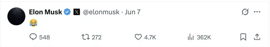 6 月 6 日,在公开骂战的第二天,特朗普与马斯克分别向外界释放了「和解信号」——前者称与马斯克沟通进展顺利,且已经安排通话;后者则在投资大佬比尔·阿克曼锐评二者「合则两利、分则两伤」的推文下做出正面回应,称其是对的。
