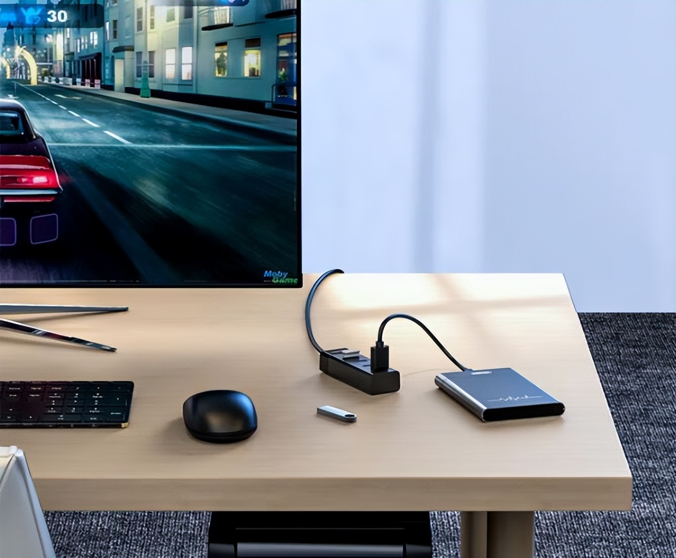 考虑到电脑后置USB接口位置尴尬、插拔不便,建议尝试USB延长至桌面,或者使用自带电源的移动硬盘盒!
