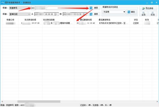 我们将要查询的快递单号粘贴到后面的文本框里,点击“搜索”,就会将这个快递单号的信息筛选出来。