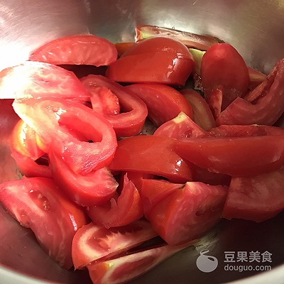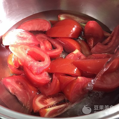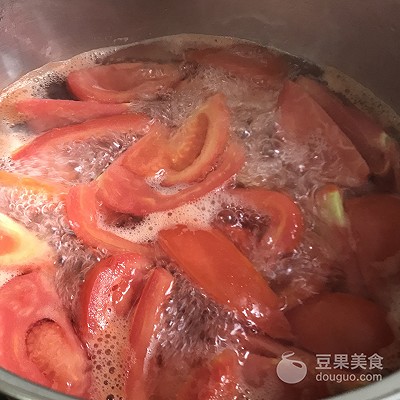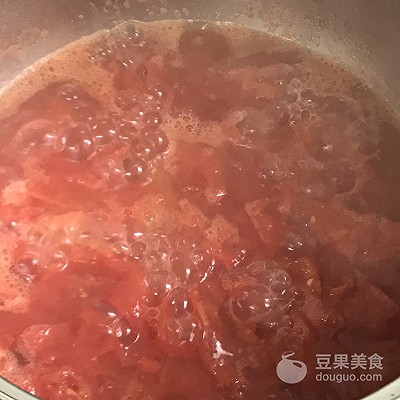 5、熬煮过程中,用勺子将番茄稍微压烂一下,直至番茄煮烂成酱,备用
