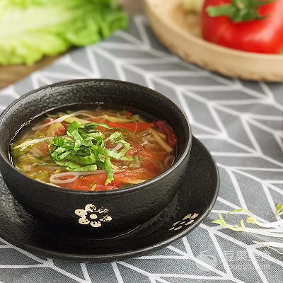 1.把生菜丝、黄瓜丝、绿豆芽和生姜丝加入番茄酱中,大火煮开后马上关火,是为了保持食材的鲜脆口感。 2.材料份量:2-3人。