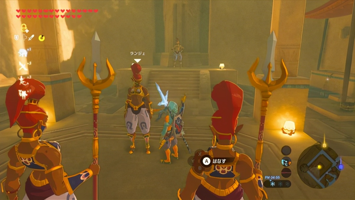 和王宫右边的军事训练场的头头对话,然后去左下沙漠的巨大骨骸处找到人对话,需要给他榴莲,然后回去和头头对话即可。