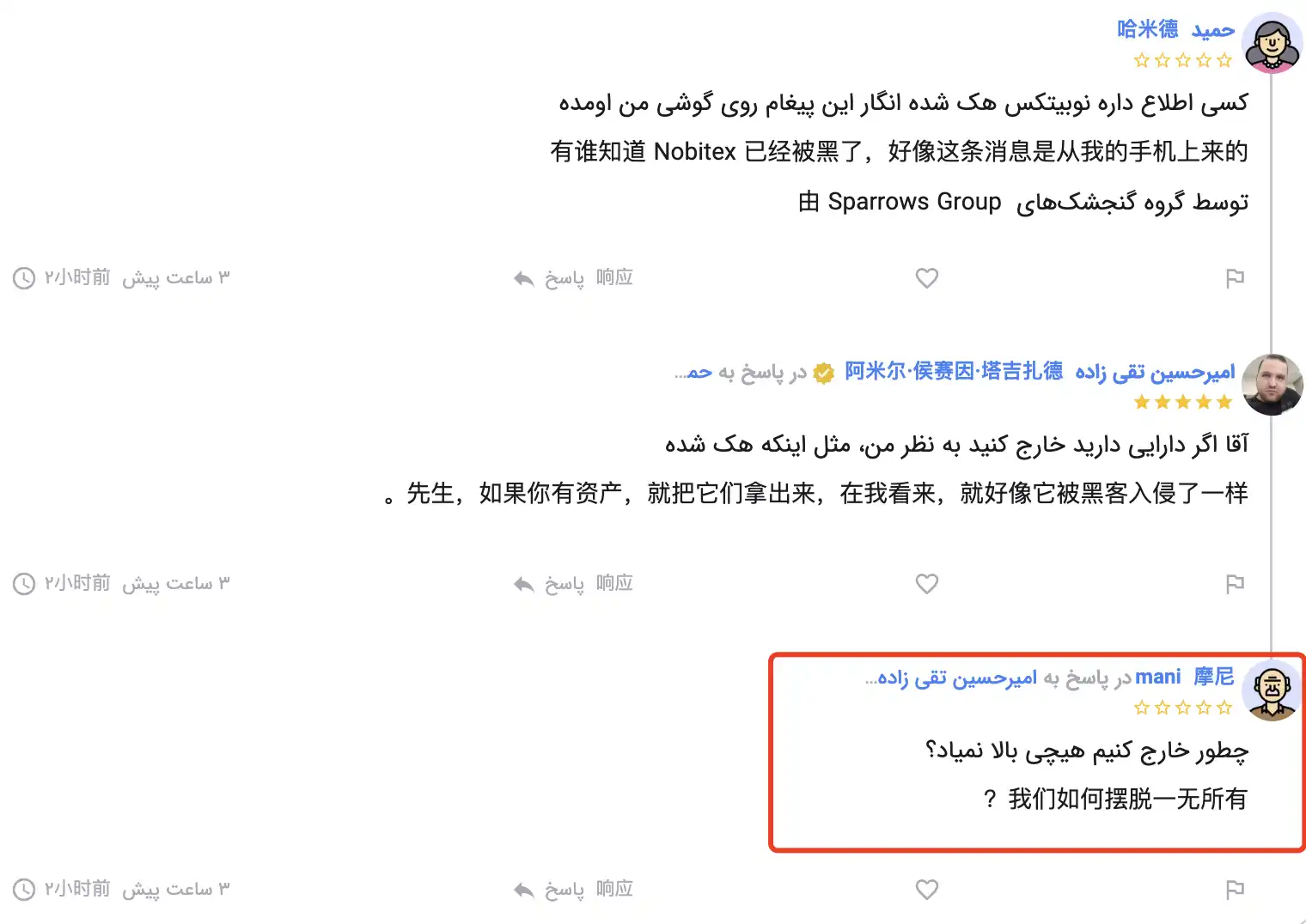 以色列黑客组织「Gonjeshke Darande」(掠食雀)在拿走 8000 万后还没有停手,说会把 Notbitex 的代码发出来,这样平台内就没有一种资产是安全的。