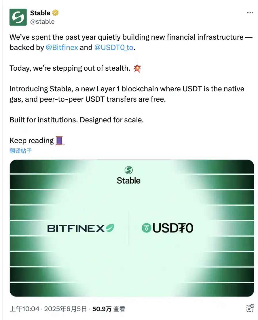 Pla**a 把这些链上的大户流动性和开发者生态揽进怀里之后,Tether 并没有就此止步。这个月 由 Bitfinex 和 USDT 统**动性协议 USDT0 支持的一条 L1 链 Stable 官宣了,Tether **执行官 Paolo Ardoino 为该项目顾问。