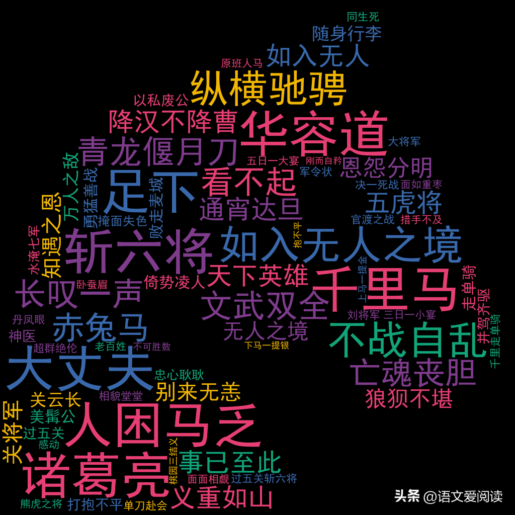 桃园/千古/华佗/轻敌/足下/江湖/上马/失色/旗号/将军/狼狈/过五关/军令状/诸葛亮/千里马/并驾齐驱/过五关斩六将/如入无人之境/