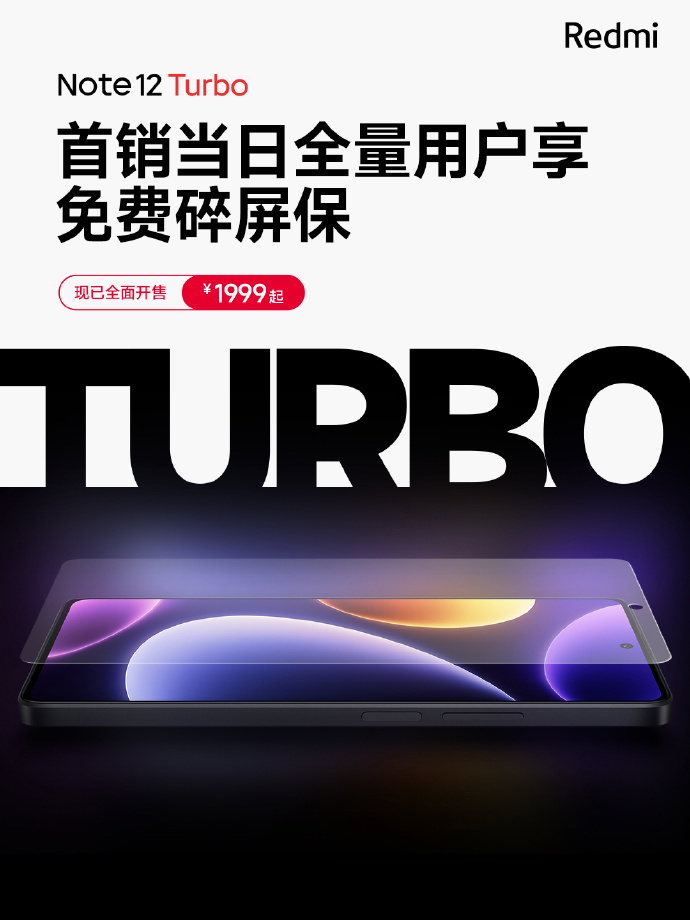 Redmi Note 12 Turbo 首销福利,今日全量购机用户享「一年碎屏保」服务。