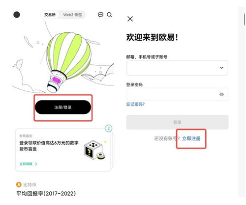 1、打开欧e虚拟货币交易平台,点击“注册账号”;注册分为手机号注册和邮箱注册两种方式,您可以自由选择注册类型,然后按照要求填写完整相应信息即可完成注册。
