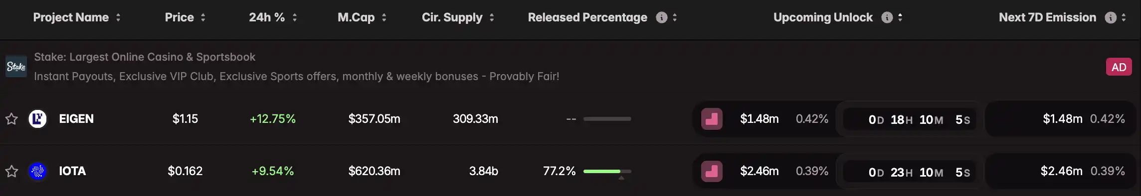 每日市场整体资金热度(根据资金费率反映)与**解锁