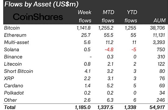 比特币的一个重要的积极市场指标是流入比特币投资基金的资本不断增加,特别是在人们对现货比特币 ETF 日益兴奋的情况下。这些比特币基金在 2024 年前两周吸引了机构投资者的 12.5 亿美元,几乎是上一年全年的 55%。这种涌入凸显了机构参与者对比特币长期价值和潜力的强烈信心。