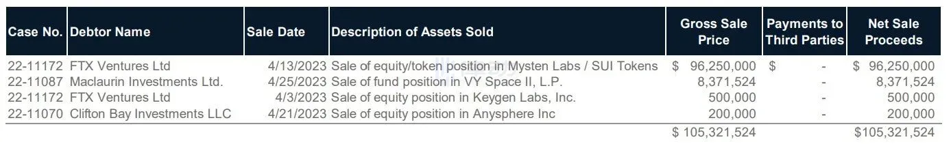 FTX 在 2022 年以约 1 亿美元换得 Mysten 股权及 8.9 亿 SUI **的认购权,但清算团队在 2023 年就以 9600 万美元的价格处理掉这笔资产,理由是「快速回笼资金」。