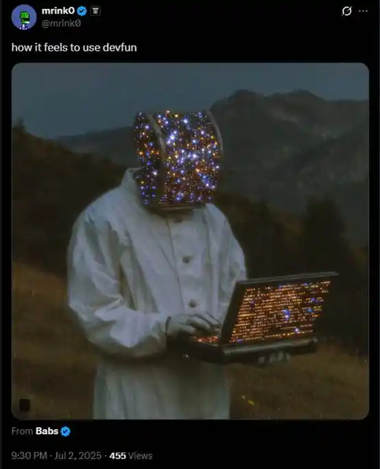 一直到最近奶 dev.fun 的相关推文也不少: